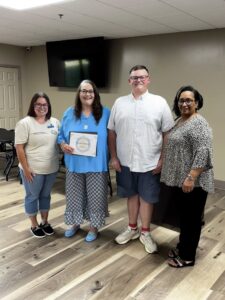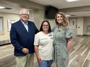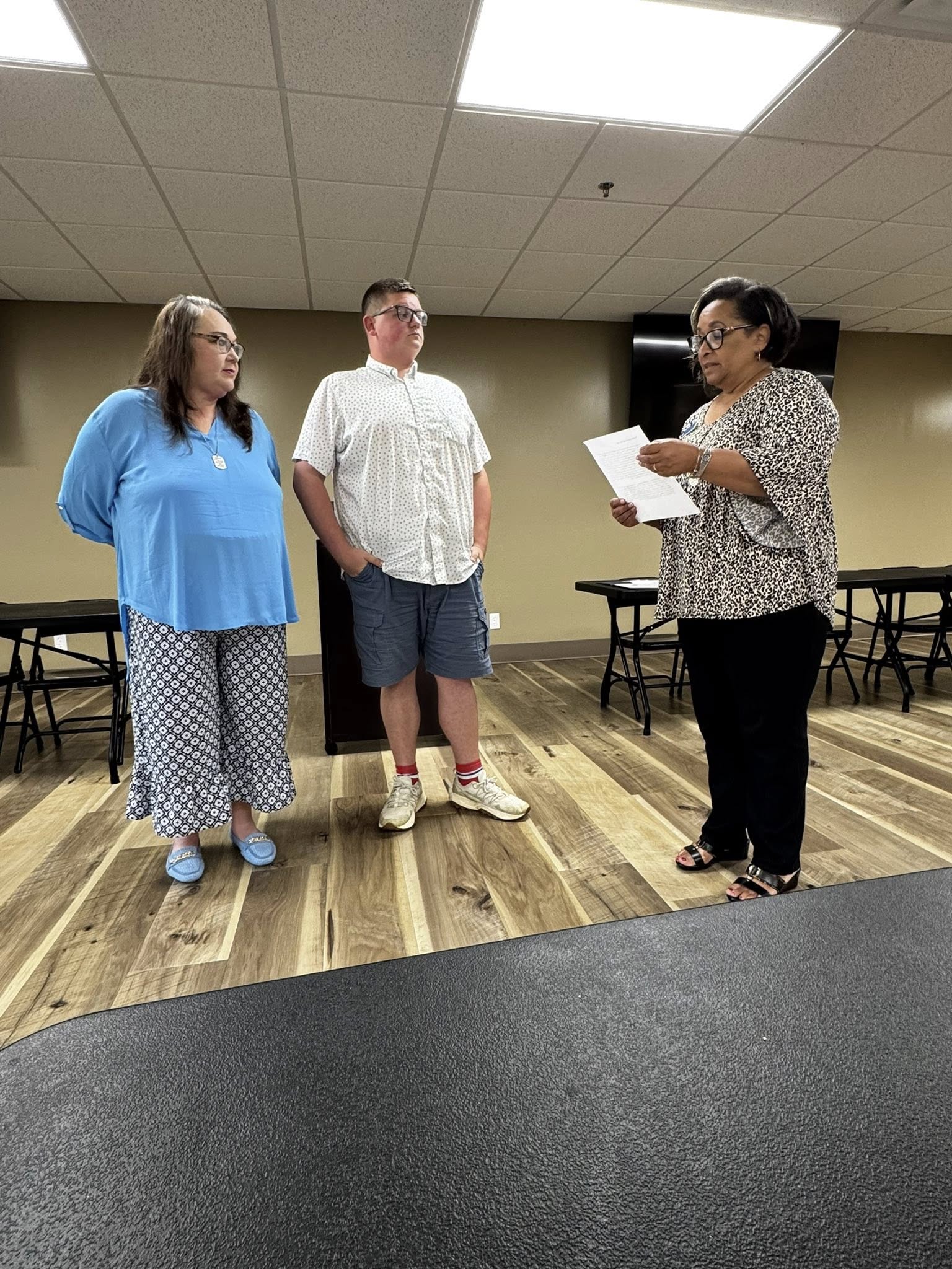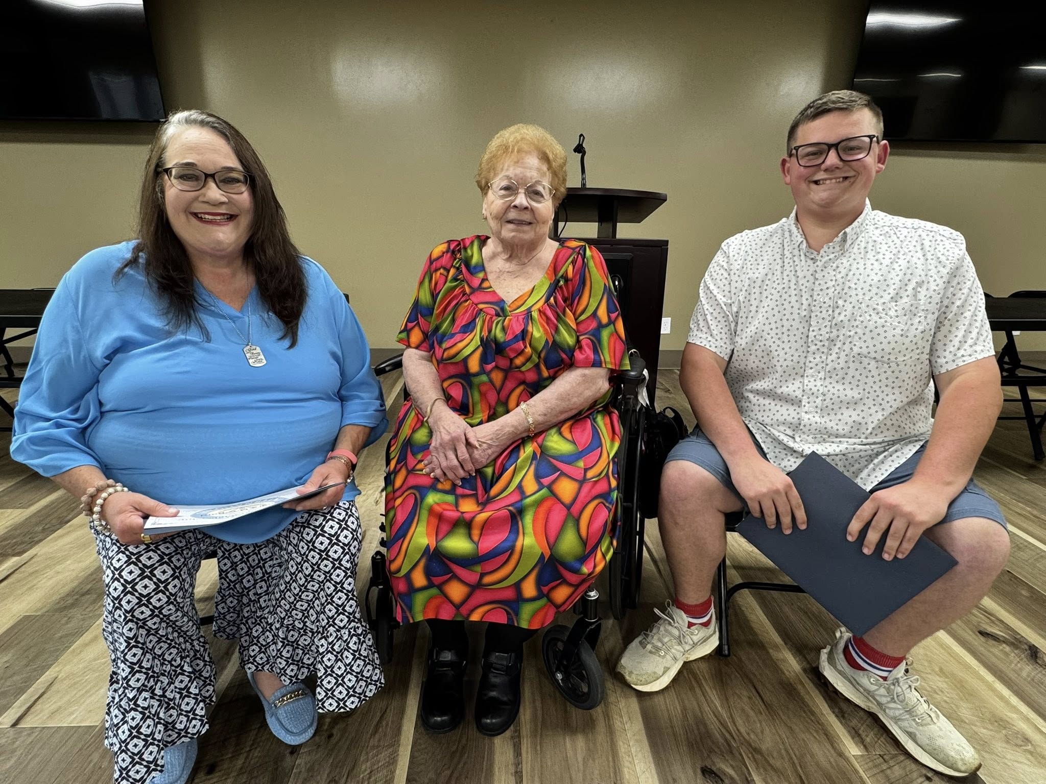 Our oldest member, Maria Batistoni, with our two newest members, Sandra and Robbie Downard. Very special evening. Mrs. B was the first female member of the Radcliff Optimist Club.
